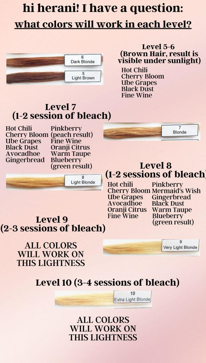 💜Lasts for 4-6 weeks! (but also depends on how frequently you shampoo your hair.)Does bleaching my hair makes it permanent?- Yes, please note that when you bleach you hair it is permanent. Our bleaching set is formulated to be more gentle on your hair and scalp compared to other bleaching sets with little to no "hapdi"!What colors are available?- Colors available depends on our stocks per month. It runs out fast so make sure to get yours ASAP!